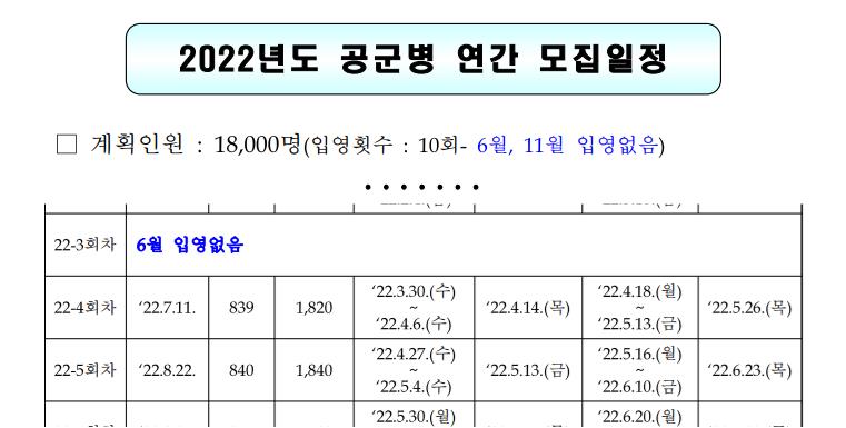 >> 공군 지원 공고는 입대일 기준 3개월 전에 병무청 홈페이지에 올라옵니다.