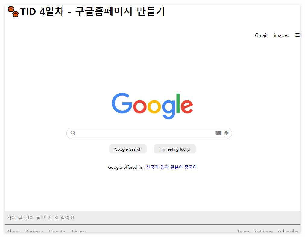 오늘 공부한 주제는 바로 HTML과 CSS로 간단 구글 홈페이지 만들어보기~!!